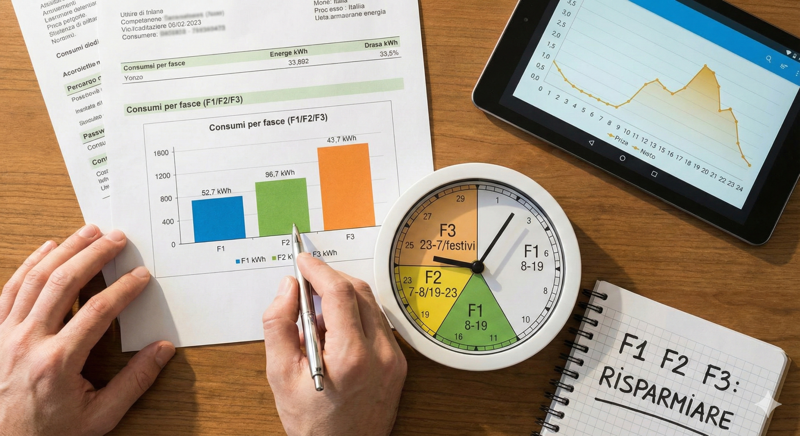 Consumi per fasce (F1/F2/F3): cosa sono davvero e come usarli per risparmiare
